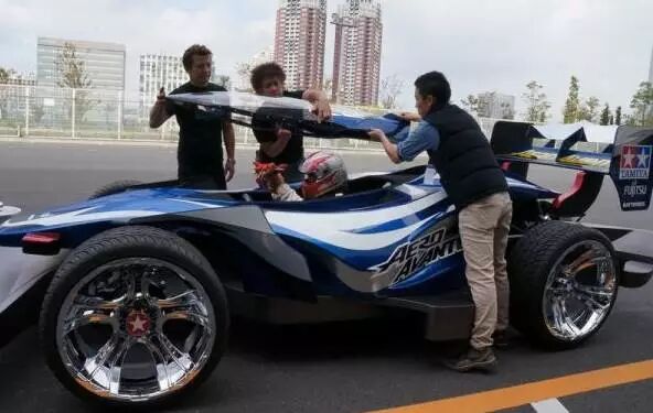 每个男孩的童年我想都至少会有一辆“四驱车”,而你是否想过将它变成真实汽车般的大小呢?不过这已经被日本的模型制造商田宫实现了。这辆1:1的“四驱车”长宽高为4650 x 2800 x 1440mm,车身由玻璃纤维制成,更可以容纳一位车手,配备1.6L四缸风冷发动机、四速手动变速箱,最高时速可达180公里/小时。