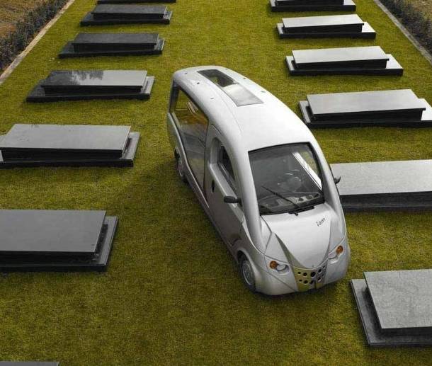 图上这辆车是一家名为Bergadana的西班牙公司生产,该车基于克莱斯勒公司的GEM电动车打造,没错!它就是一部灵车,其续航里程45km,公司CEO称之所以推出这款灵车是因为"讨厌发动机声掩盖了哭声",为了更好地沉浸在葬礼的气氛中。这....我想静静。