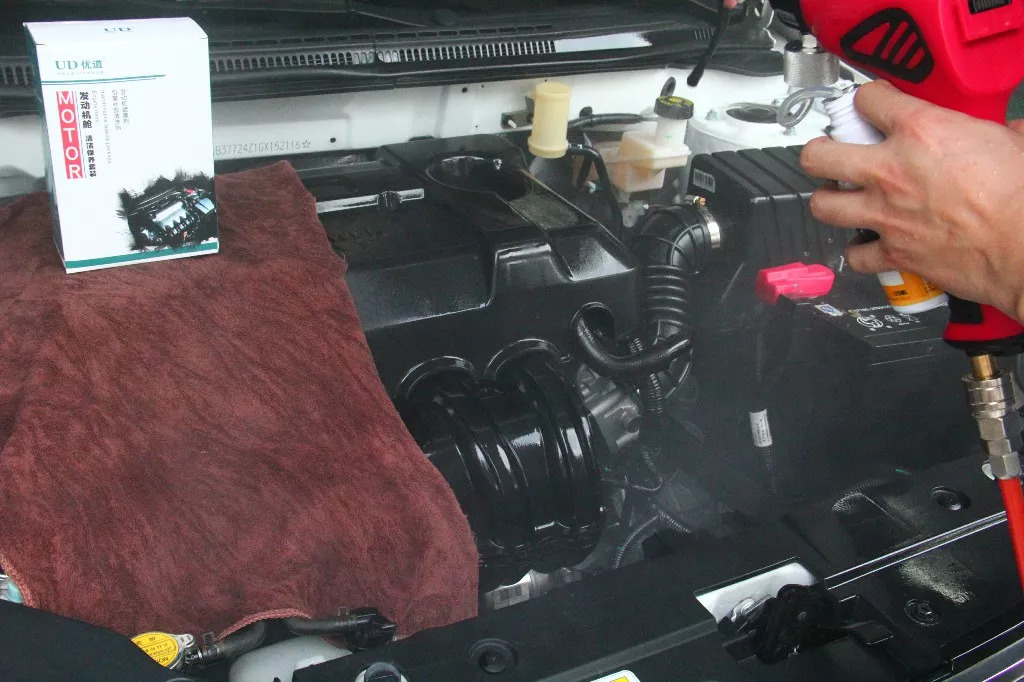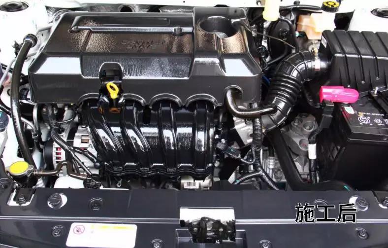 喷完发动机镀膜剂后,施工就已经完成了,发动机表面就有一层保护膜附着。